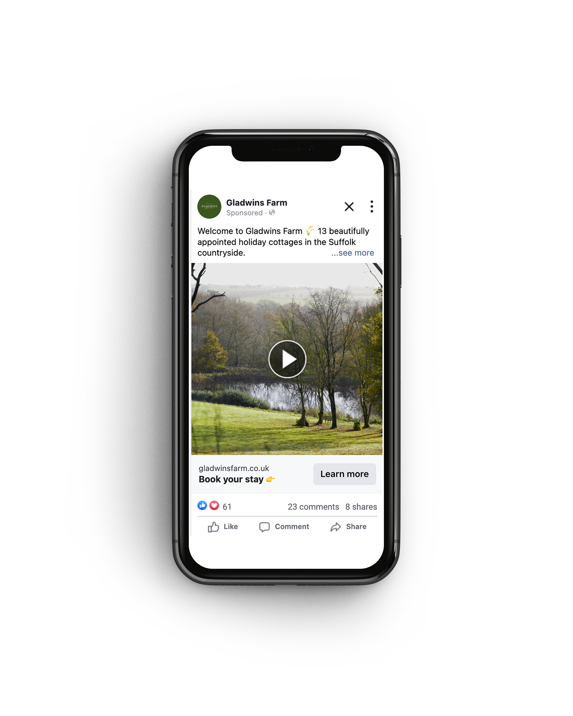 For Gladwins Farm, a collection of unique staycation cottages in Suffolk, we created a brand designed to reflect the calm, character and charm of the countryside. From the initial identity through to marketing materials, videography and social media, every touchpoint has been carefully considered to feel cohesive and premium.