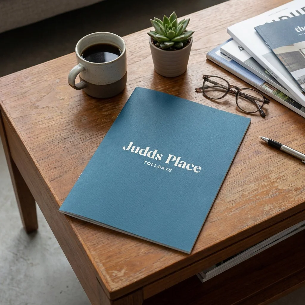 We started at the foundations, developing the name and logo. The identity needed to feel contemporary, confident,and energetic, capturing the ambition behind the development. By retaining the name “Judds,” the brand also acknowledges the heritage of the land, connecting the new development to its past. The result is a bold yet professional brand.