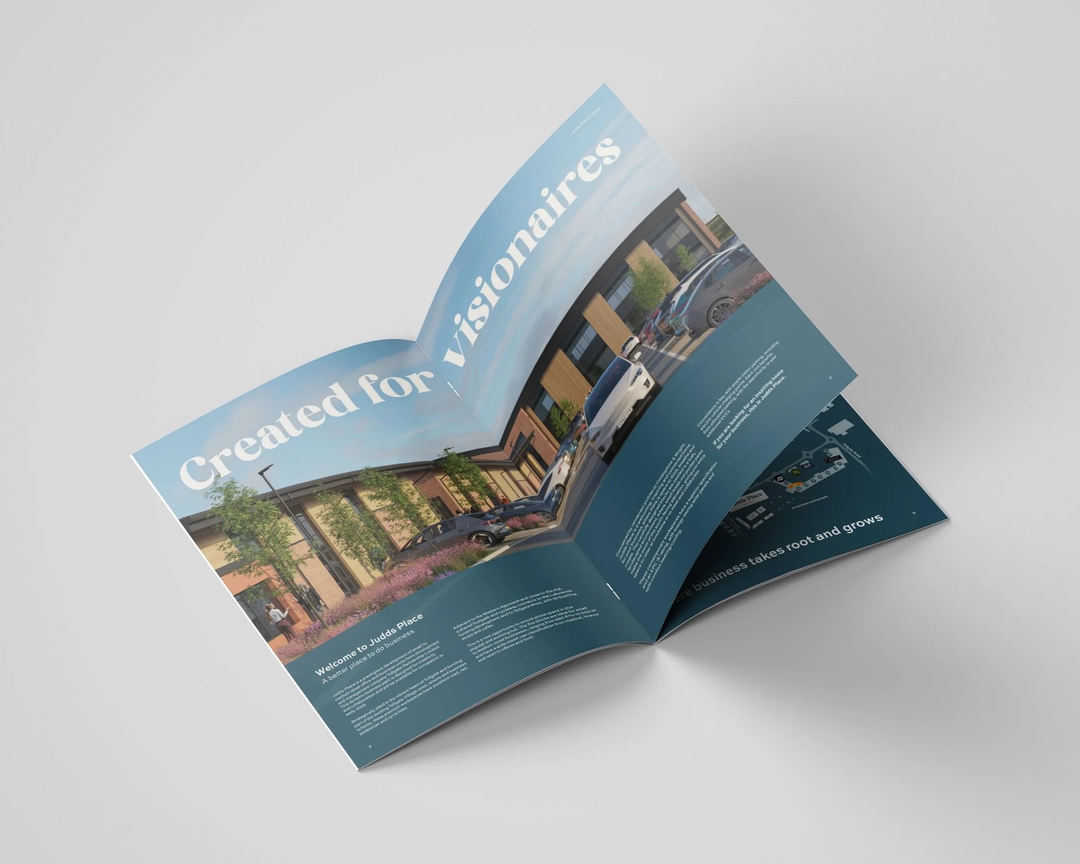 The project also included a commercial brochure, website design and development, as well as on-site signage and hoarding. Each element was carefully designed to work together cohesively, creating a seamless and consistent experience for prospective tenants, whether they first encountered Judds Place online, through printed marketing materials, or during a visit to the site itself.